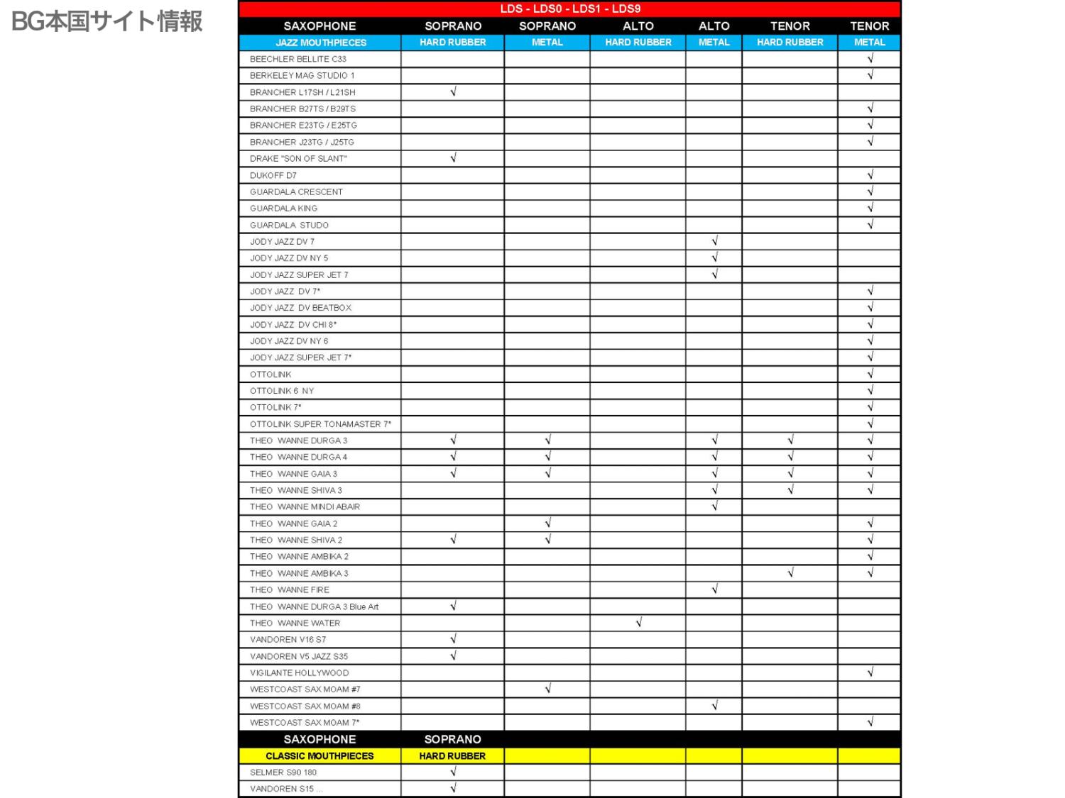▼BG金属製リガチャーラインナップ(ソプラノサックス)