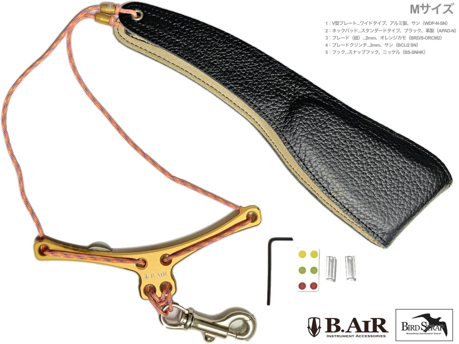 B.AIR ビーエアー バードストラップ カスタマイズ ワイド サン オレンジ サックス用 Mサイズ 2mm ネックストラップ BIRD STRAP wide saxophone 北海道 沖縄 離島不可アルミ製プレート スナップフック 革製 Alto Tenor sax