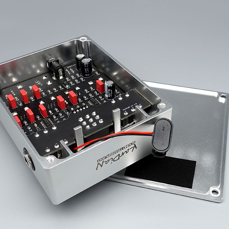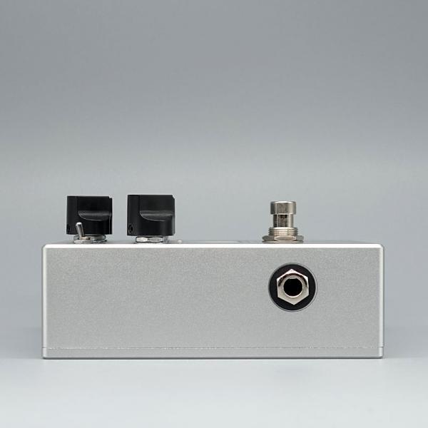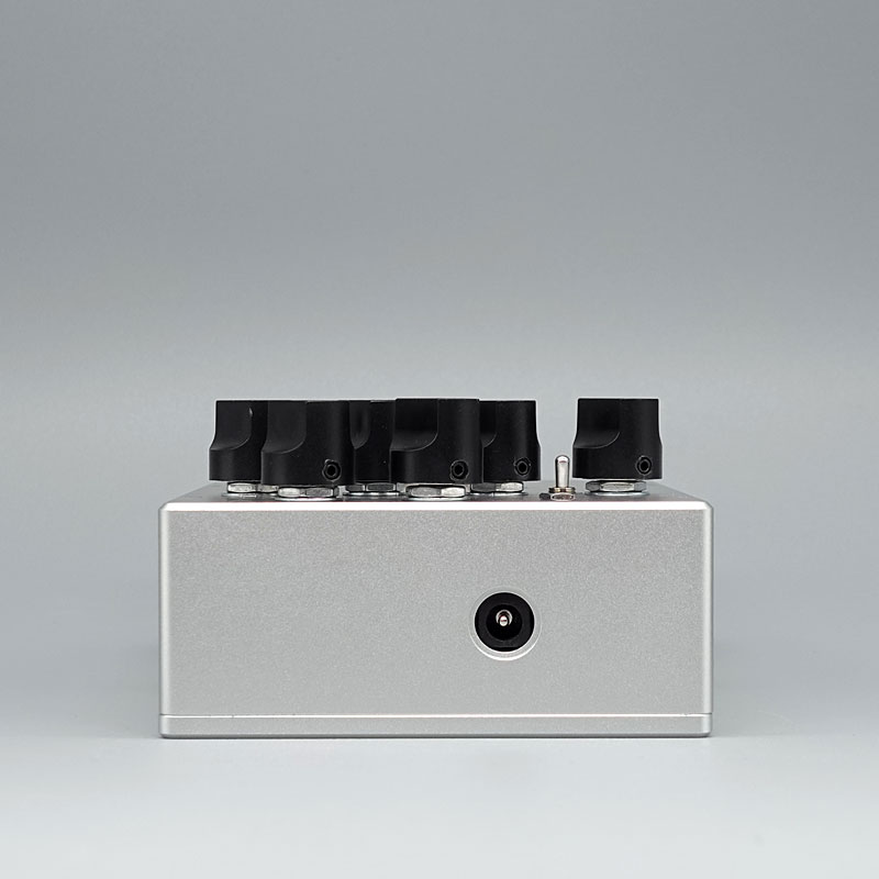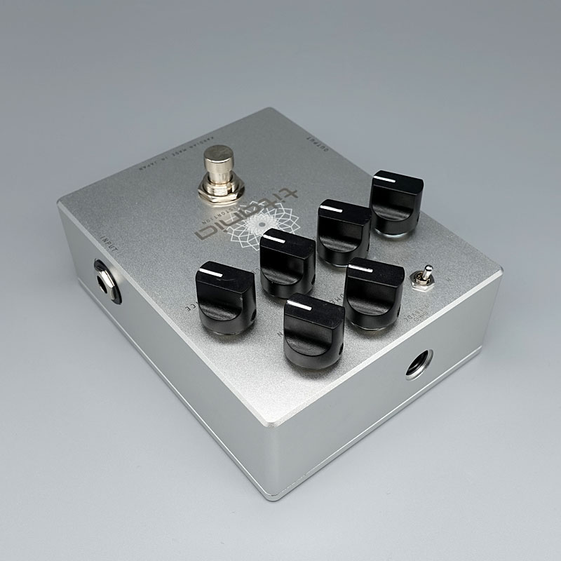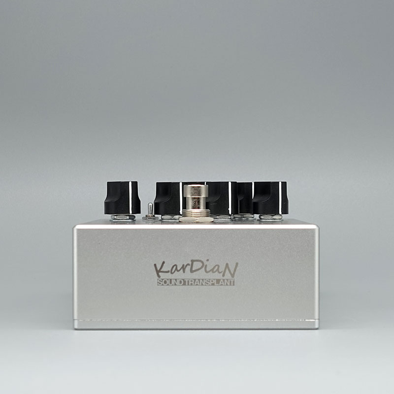 KarDiaNの新ラインナップである本機にはアルミ削り出しボディの筐体を採用しました。傷に強いサンドブラスト加工を施し、ライブでも堅牢なペダルとして活躍します。また高級感のあるアルマイト処理の筐体は特別なペダルとして末永く愛されるように丁寧に作り上げました。