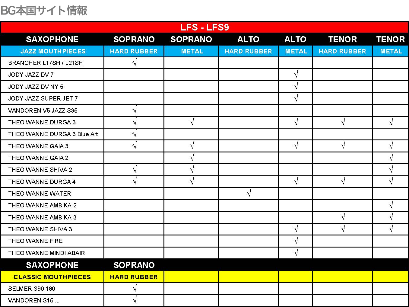 ▼BGファブリック製リガチャーラインナップ(ソプラノサックス) ■エボナイト、ハードラバー製マウスピース用 ・Standard(スタンダード)...ファブリック(布)製で、サポート(リード接地面)部分にラバーを採用。温かくまろやかな深みのある音。小編成のアンサンブルや室内楽に適しています。 サポート:ラバー