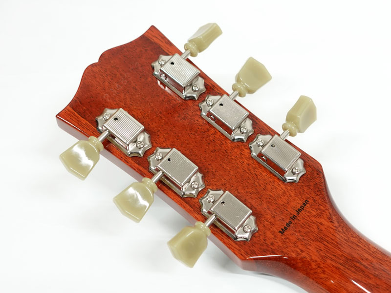 メイプルトップ、マホガニーバックのレスポール王道のボディスペック。重圧なサウンドに切れ味を持ち合わせジャンルにこだわらずロックサウンドを作り出します。