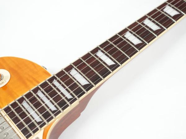 GIBSONレスポールスタンダードを忠実に再現し、見事なフレイムメイプルをトップ材に採用。美しさと分厚いサウンドは本家GIBSONに負けない完成度です。