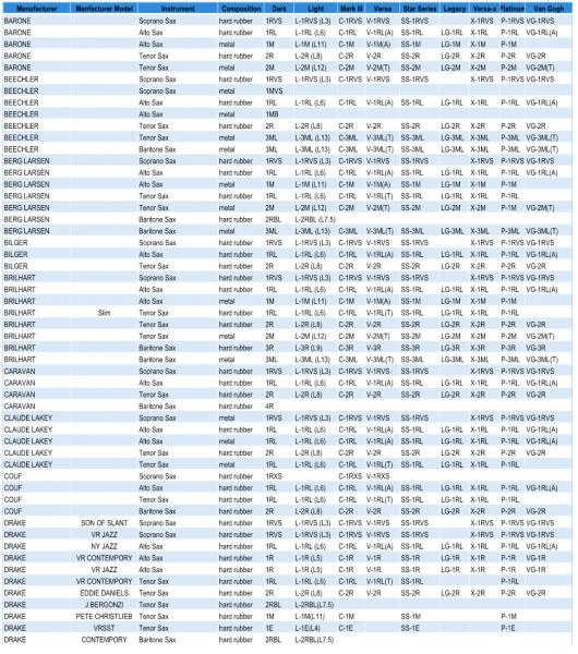 またWEB検索にて「rovner Saxophone Ligature Sizing Guide」などと検索しましたら、本国のサイトにて選択して簡単に表示させるようなものも用意されているようです。