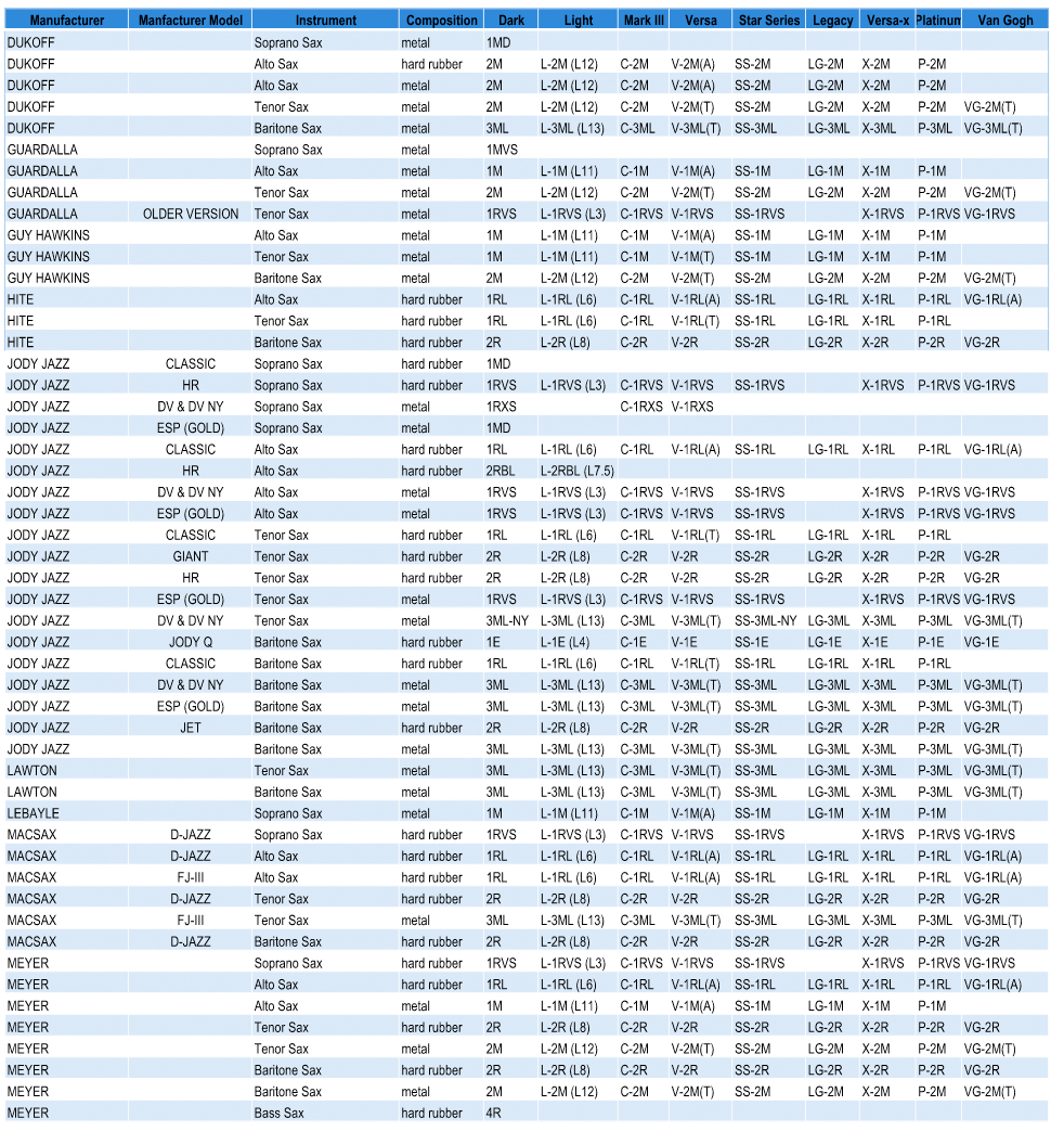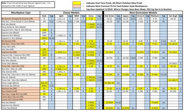 またWEB検索にて「rovner Saxophone Ligature Sizing Guide」などと検索しましたら、本国のサイトにて選択して簡単に表示させるようなものも用意されているようです。
