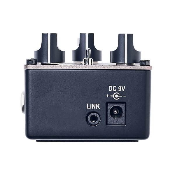 コンプレッション効果を重視し、カッティングトーンだけでなく、コンプレッションのニュアンスを感じさせないセッティングでも、軽いタッチでしっかりとしたサウンドを実現します。 これにより、コンプレッサーのファンではないプレイヤーや、現代的なクリーントーンのバッキングやタッピングなどに非常に効果的です。 また、ソリッドステートアンプやデジタル機器に接続し、真空管のニュアンスを取り入れるのもおすすめです。 ミニスイッチでキャラクターを選択できます。