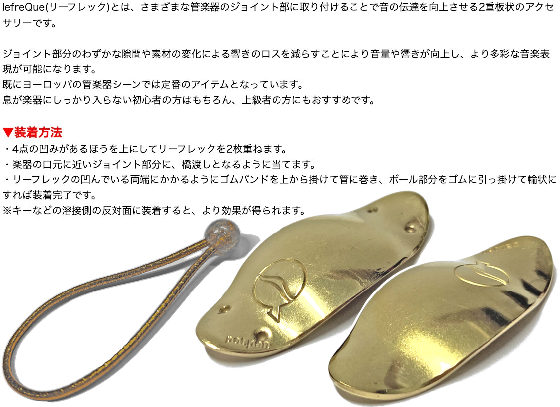 ■lefreQue ( リーフレック ) GoldPlated RB レッドブラス+金メッキ 41mm...管楽器のジョイント部に取り付けることで音の伝達を向上させる2重板状のアクセサリーです。 ジョイント部分のわずかな隙間や素材の変化による響きのロスを減らすことにより音量や響きが向上し、より多彩な音楽表現が可能になります。