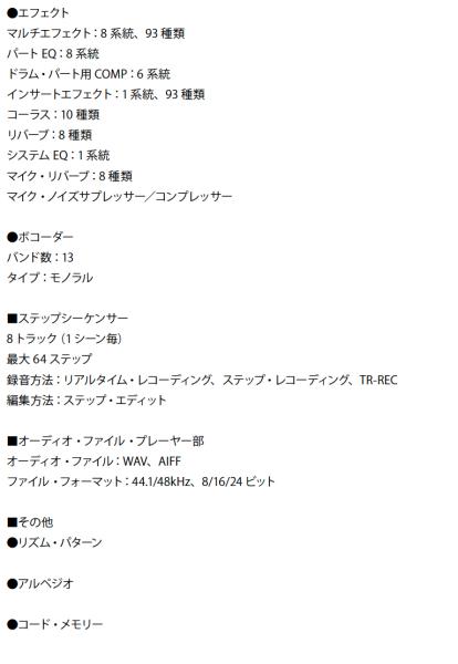 また、シーケンサーと容易に同期するリズム・パートやアルペジオを駆使すれば、キーボード演奏時のバッキング・トラックを即座に作成することも可能です。