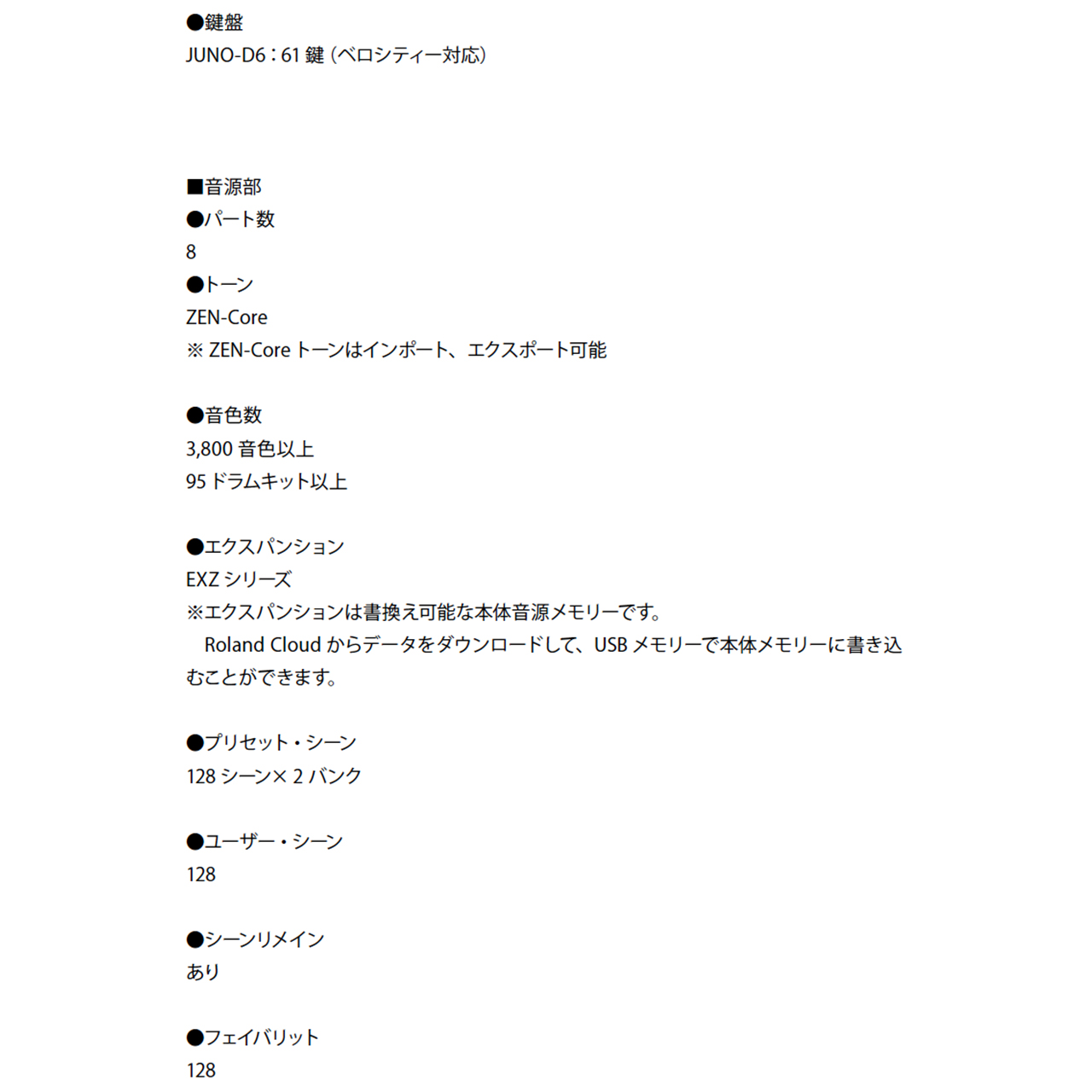 また、前モデルJUNO-DS で評価の高かった一部音色も収録しています。