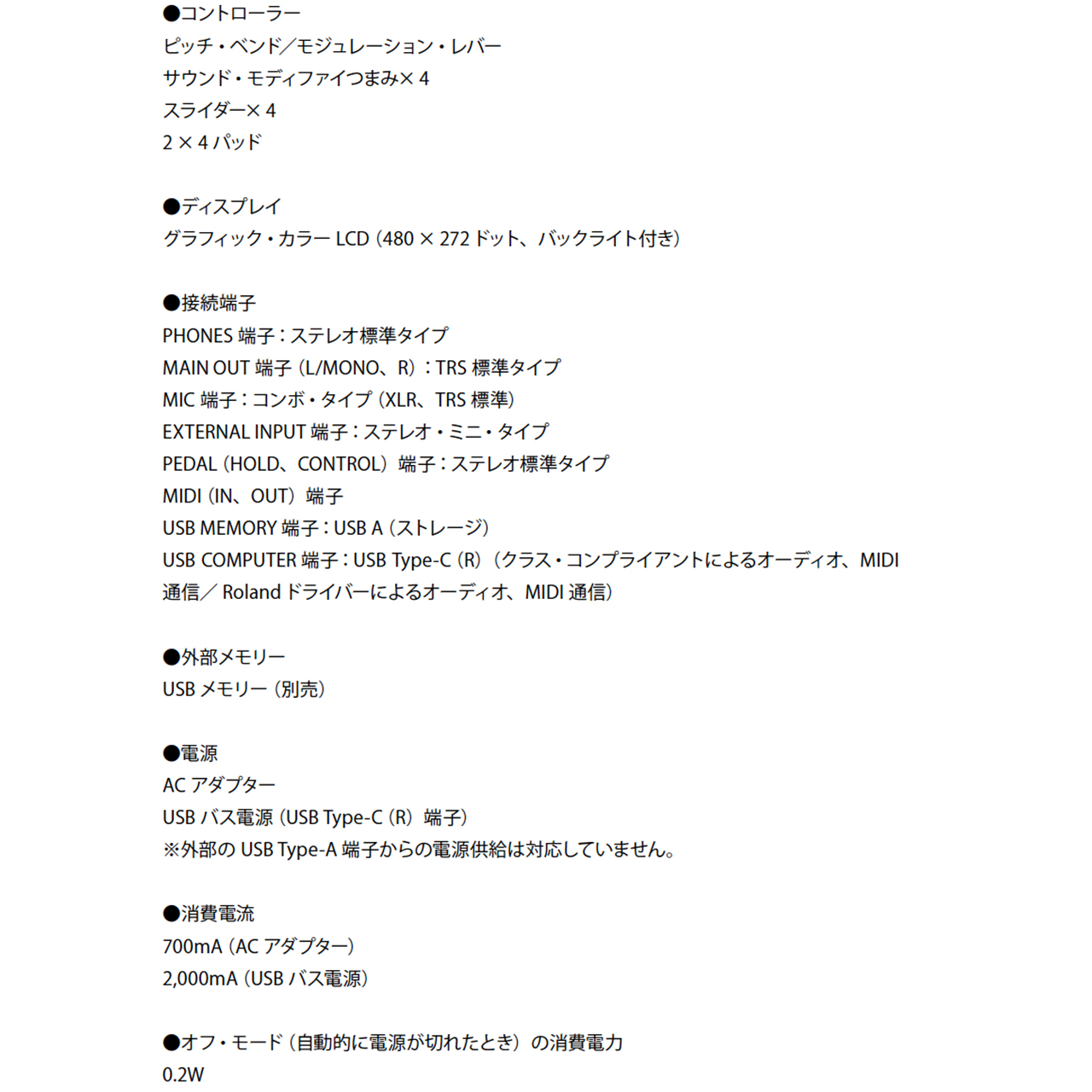 また、演奏性を向上させるため、FANTOM-0などで採用しているキーボード・ユニットを採用。