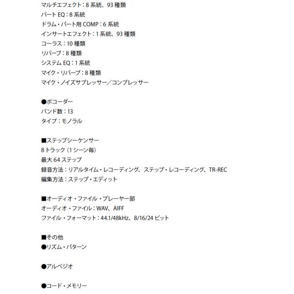 また、シーケンサーと容易に同期するリズム・パートやアルペジオを駆使すれば、キーボード演奏時のバッキング・トラックを即座に作成することも可能です。