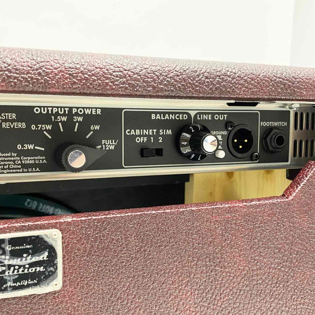 リアパネルには、フルパワーと5段階のアッテネート設定が可能な出力パワーセレクター、Shure SM57およびRoyer R-121マイクでキャプチャした インパルスレスポンス(IR)キャビネットシミュレーションを備えたバランスXLRライン出力、ステージやレコーディングでスピーカー出力を ミュートするミュートスイッチ、ファームウェアアップグレード用のUSBポートなど、現代の利便性と柔軟性をもたらす機能が装備されています。