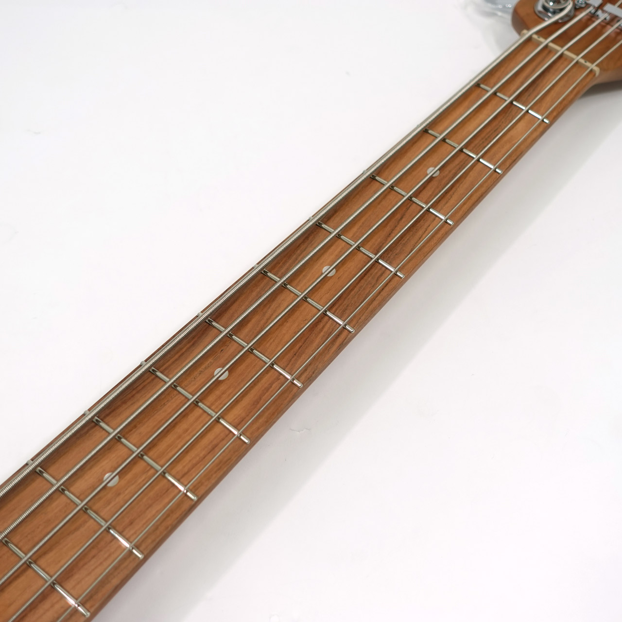 スタンダードなディンキーシェイプのオクメボディにローステッドメイプルネック、モラド指板、ロングスケールの24フレット5弦モデル。