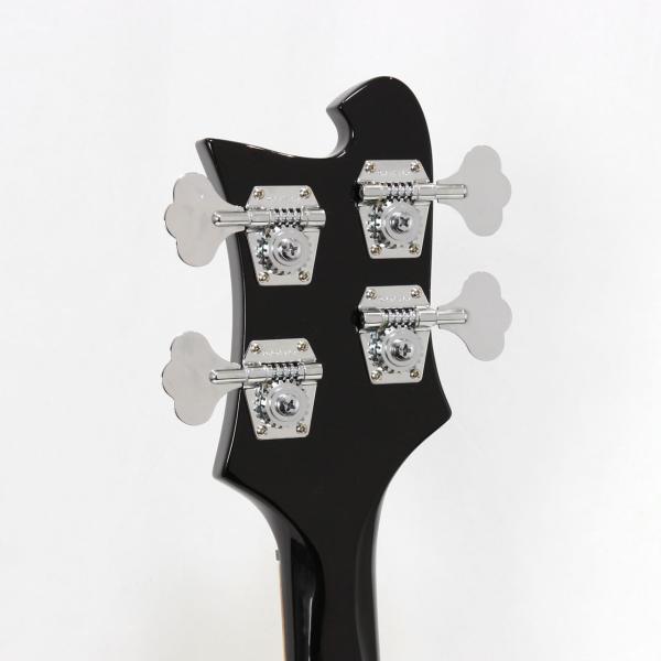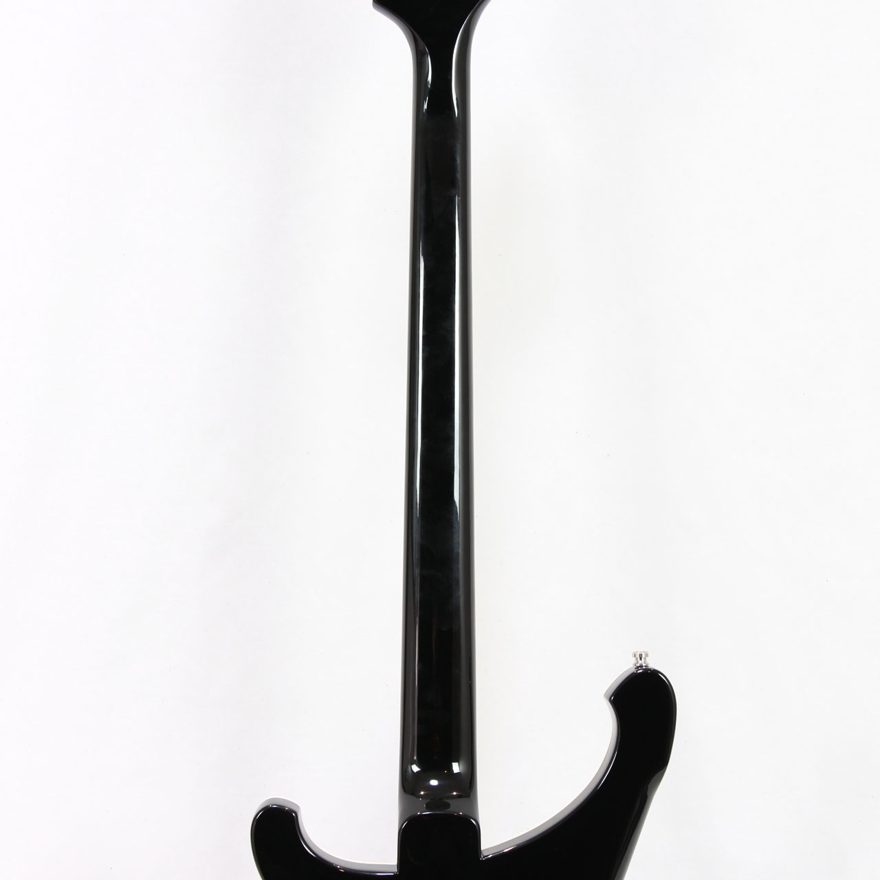 精巧なバインディングのストライプがエレガントにカーブしたボディとリッケンを象徴する指板インレイがロックなブラックカラーながら華のあるルックスとなっています。