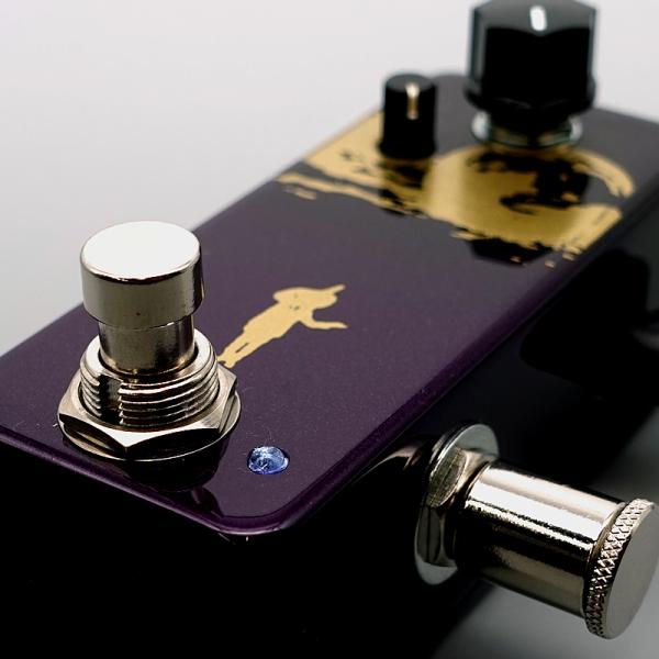 boostつまみはシンプルに音量を可変します。利便性を高めるため、 絞りきった状態では原音より音が小さくなるよう設計されています。お使いの楽器、ピックアップの出力によりますが boostつまみが2時を回ったあたりから単体での歪も発生します。