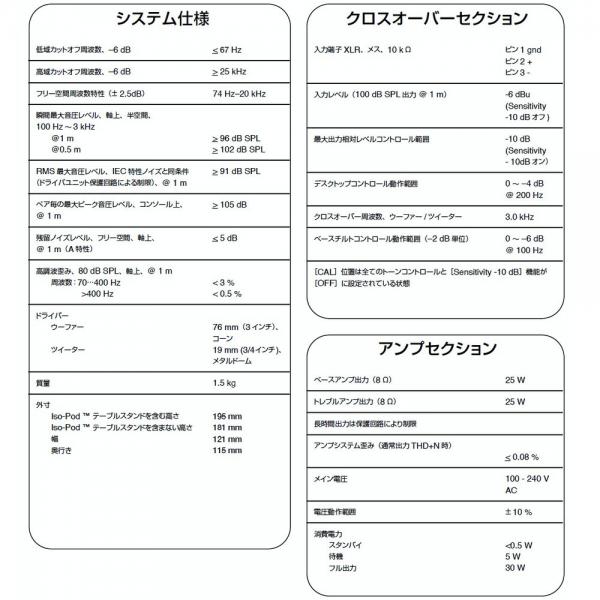 アンプ出力 /ch:低域(Dクラス・アンプ) 25 W / 高域 (Dクラス・アンプ)25 W