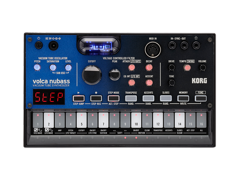volca nubassは多彩な機能を持つ本格的な16ステップ・シーケンサーを装備し、リズム・マシンなどと一緒に使うことで、リズム・トラックやループ・ミュージックを組み立てることができます。 volcaシリーズでおなじみの16個のボタンを使ったステップ入力や、そのボタンを鍵盤として演奏することによるリアルタイム・レコーディングに対応。複数のシーケンス・パターンを連続して再生させるチェイン機能は、最大16個のシーケンスをループ演奏することができます。