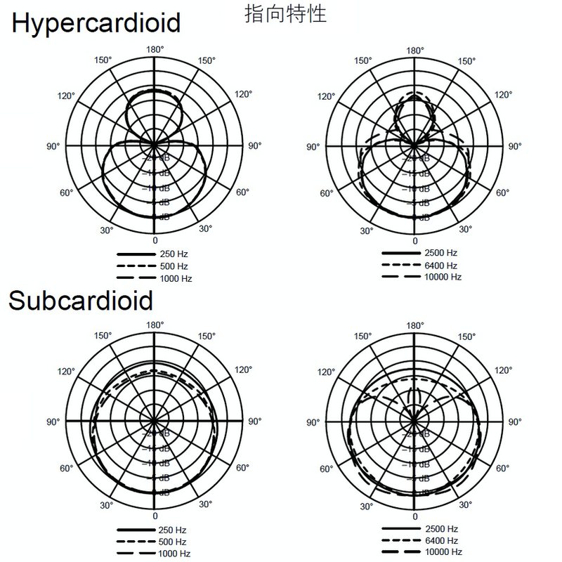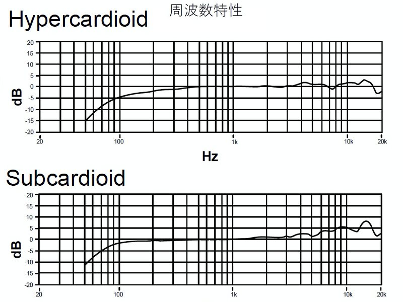・軸外音源を協力に排除するため、高音圧のステージ上でボーカルの声を収音する能力がスーパーカーディオイドよりも優れているハイパーカーディオイドの特性は、声量の小さいボーカリストにも最適。