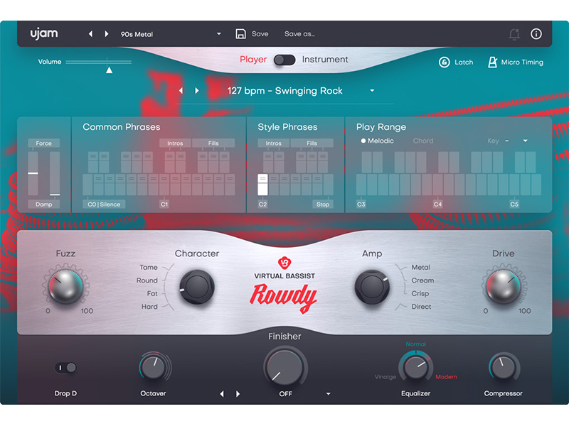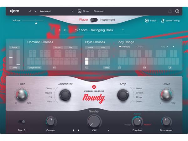 「Virtual Bassist ROWDY」は、歪みの効いたトーンを駆使して、大胆且つエネルギッシュに、そしてラウドに攻めるピック弾きロック・メタルベーシスト。更に細かい音作りのためにDIとアンプ選択、Driveの量やOctaverなどのエフェクトも調整可能。 主な特徴