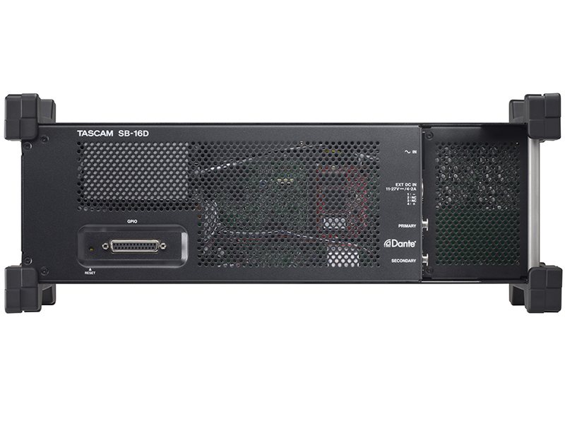 『SB-16D』はデジタルミキサー『TASCAM Sonicview』のオーディオ部と全く同じハードウェア構成で同等の性能を確保し、高音質マイクプリアンプを搭載した16チャンネル入出力を拡張するDanteステージボックスです。