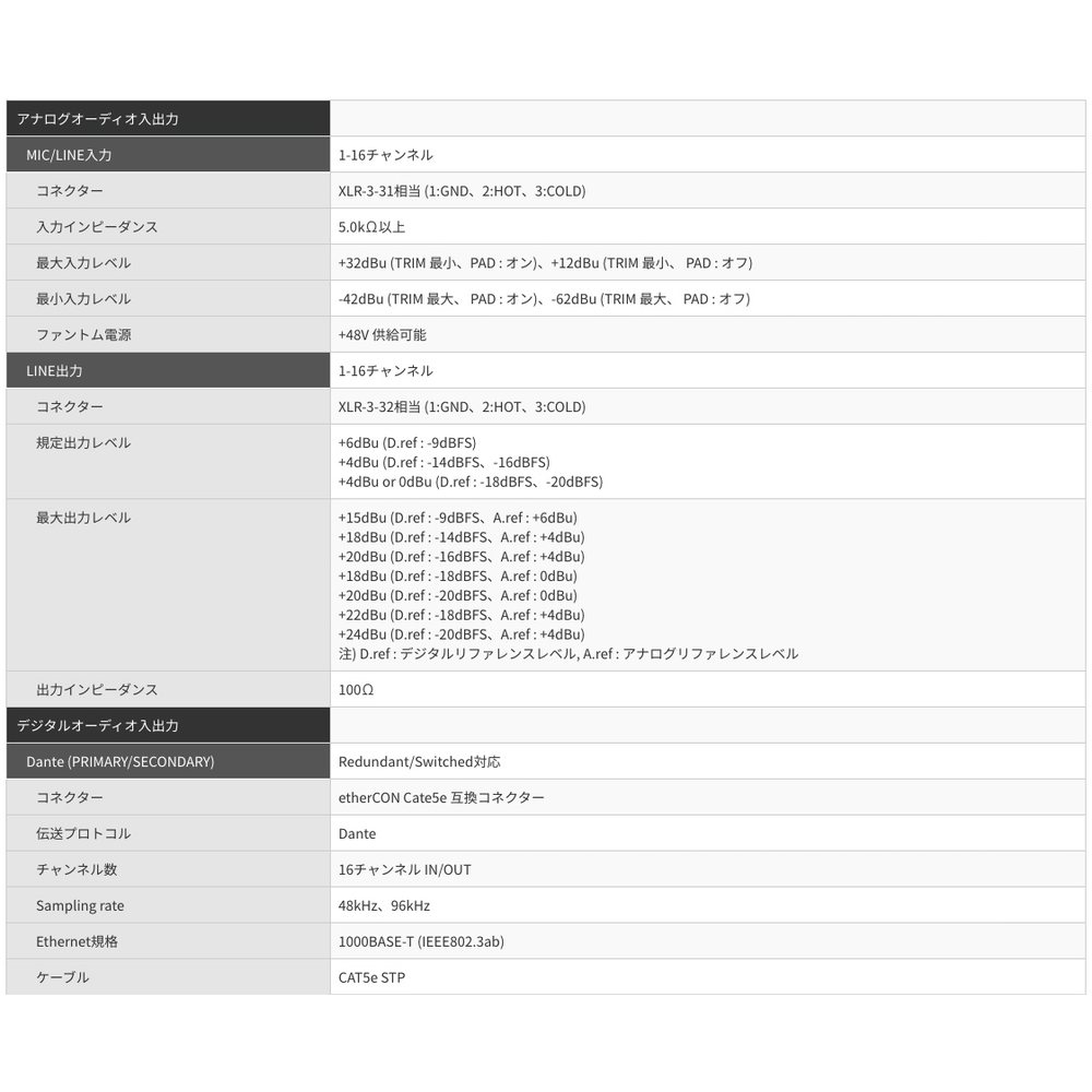 ・リダンダント対応16イン/16アウト Danteインターフェース