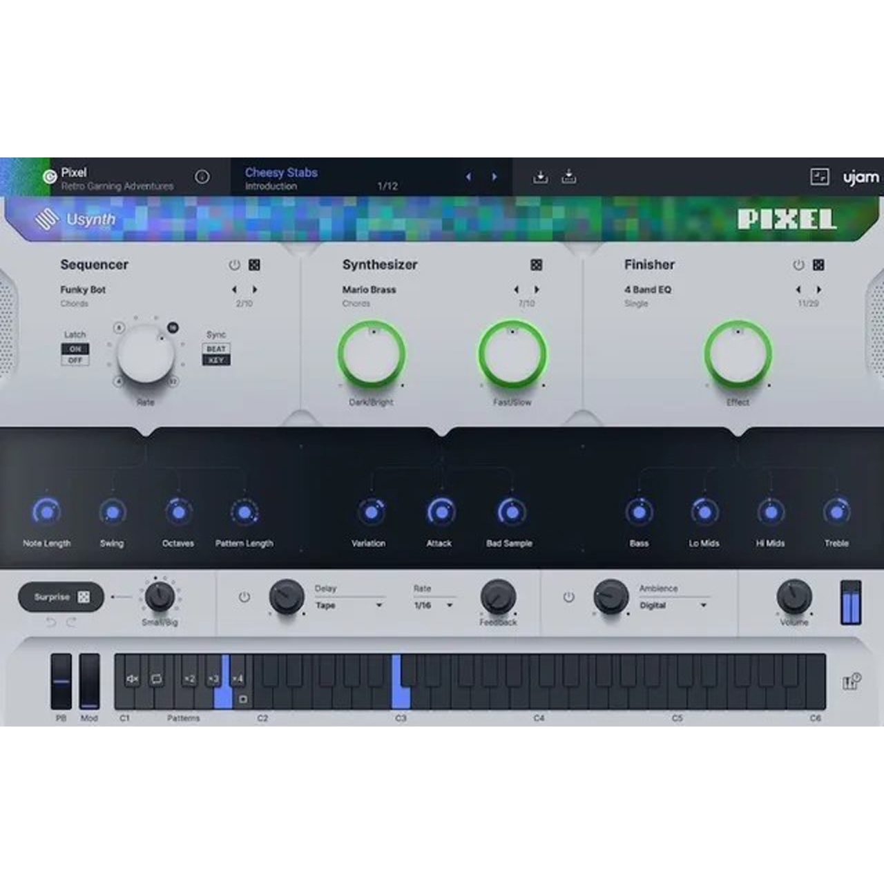 ベース、コード、メロディー、アーケードFX、そしてドラムまでを網羅したパワフルなシンセサイザーエンジン、UJAMフィニッシャー、フレキシブルな内蔵ディレイとリバーブ、直感的なブラウザ、使いやすく親しみやすいインターフェースなど、レトロゲームサウンド制作に必要な全てがそろっています。