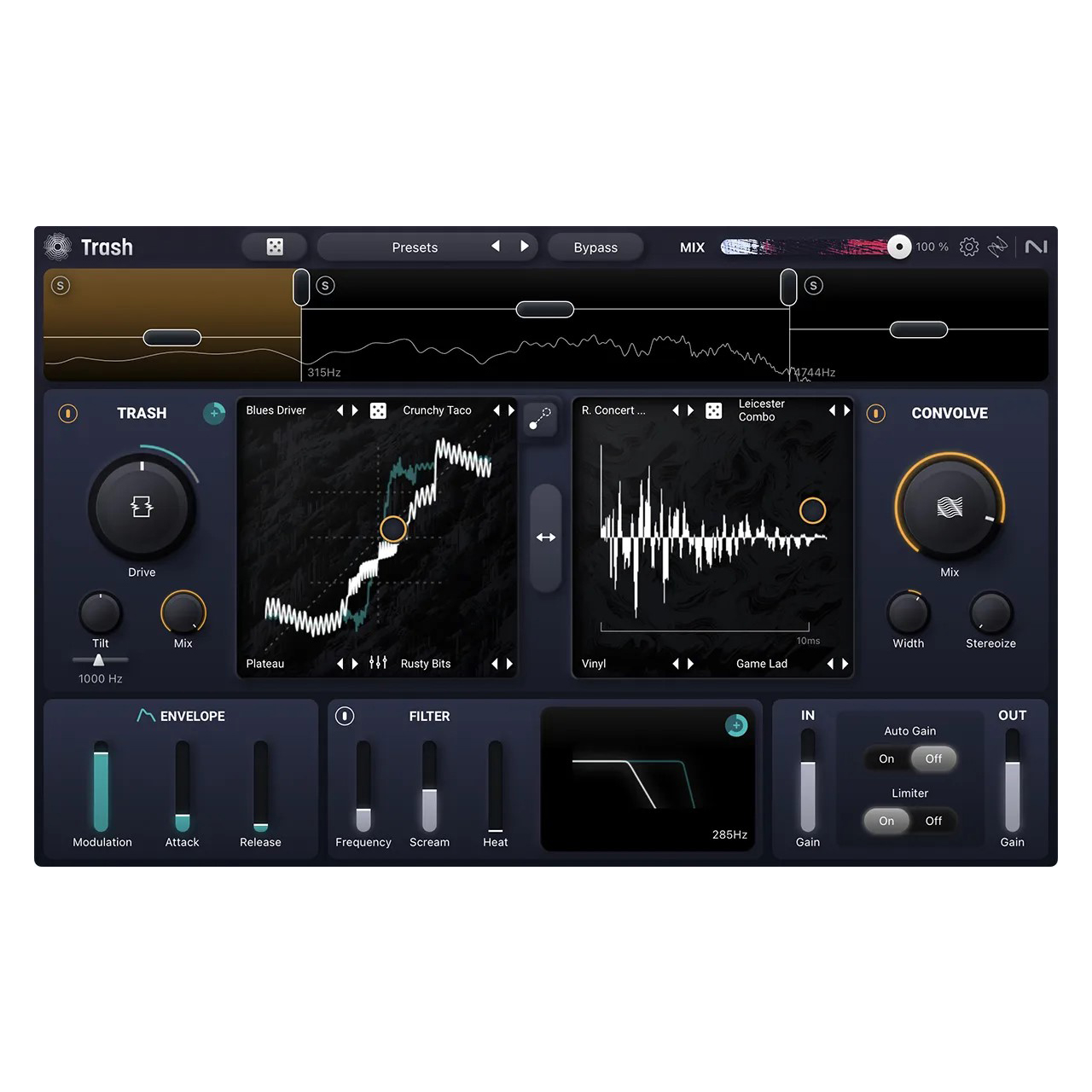 ロー、ミッド、ハイの帯域を、TrashとConvolveモジュールを使って個別にカスタマイズ