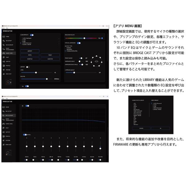 BRIDGE CAST は配信者の声の質を上げるのに役立つ、さまざまな音声処理機能を備えています。