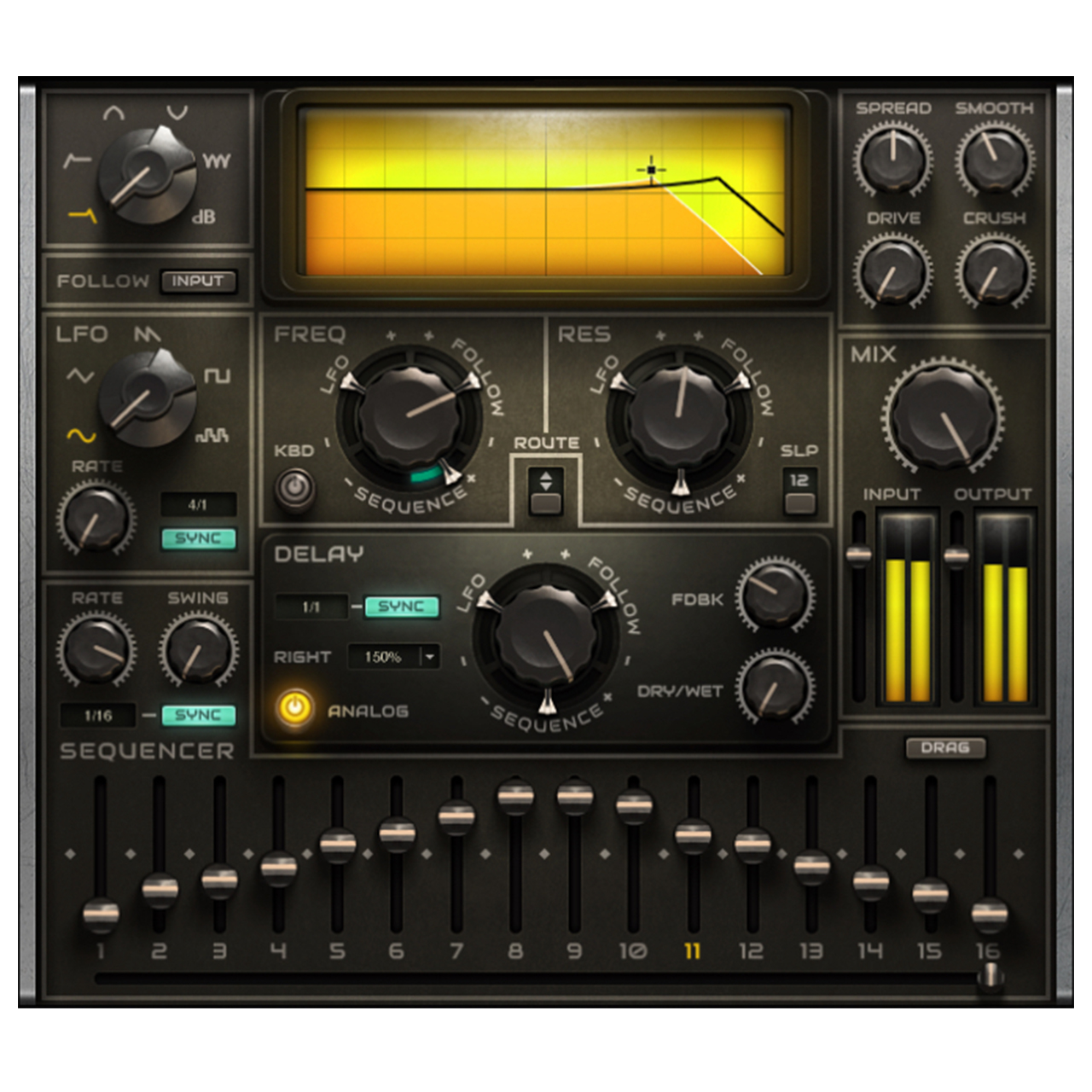 ・ 3タイプのモジュレーター(16ステップ・シーケンサー、LFO、サイドチェイン機能搭載エンベロープ・フォロワー)