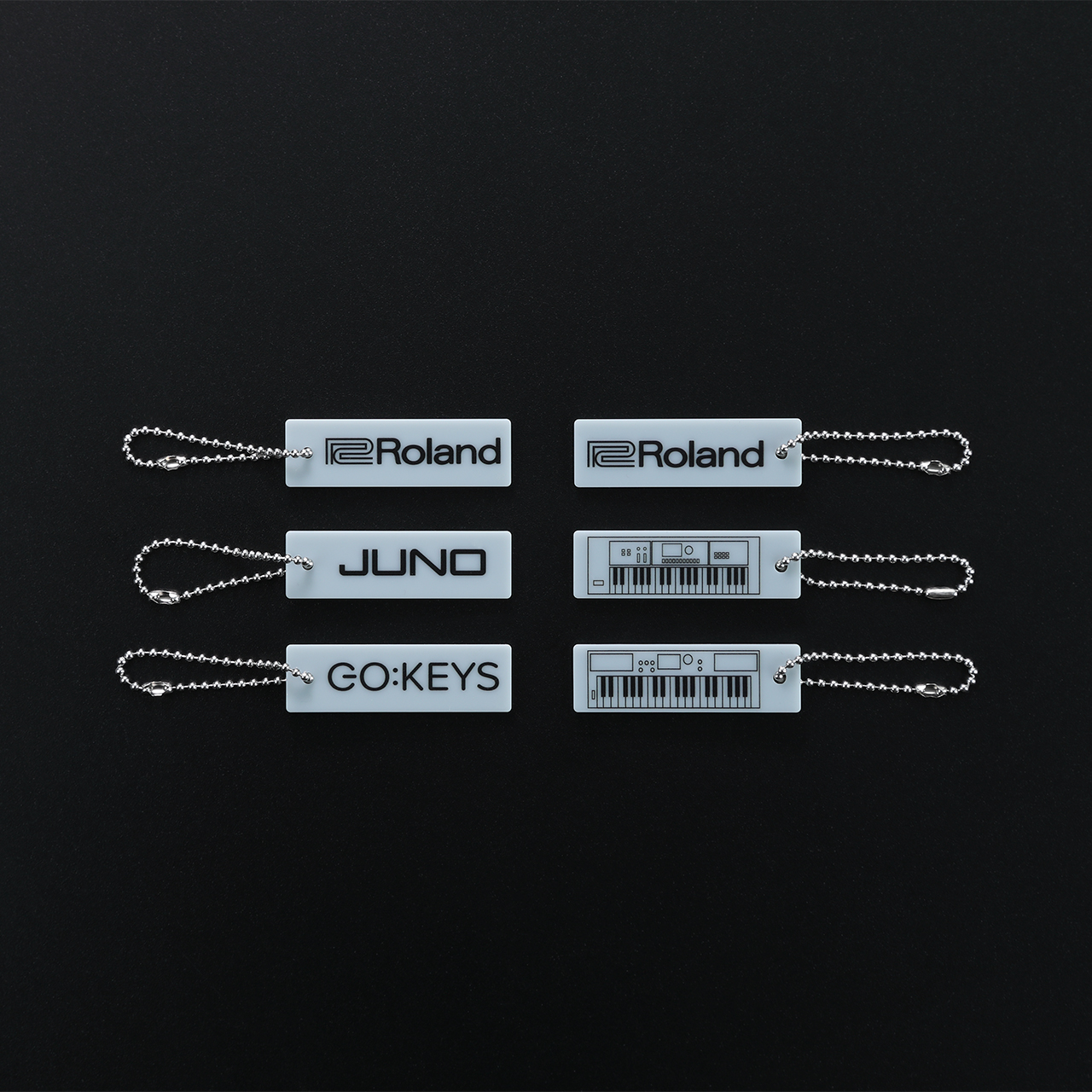 Roland/JUNO/GO:KEYSのロゴがそれぞれ入った3つのキーチェーンを付属。