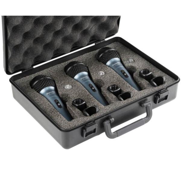 ECO88S/3 Packはコストパフォーマンスに優れたスタンダードなボーカル用ダイナミックマイクロホンECO88S を持ち運びや収納に便利な樹脂製キャリングケースをセットしたマイク3本組パッケージです。 ECO88Sは強固なメッシュヘッドと耐久性のある金属ボディ、バックグラウンドノイズやフィードバックを抑制が期待できるスーパーカーディオイド特性の指向性をもつマイクカプセルを採用。 正面の音をフォーカスしてしっかり収音します。 トークスイッチ付きで幅広いシーンで活躍するエントリーモデルです。