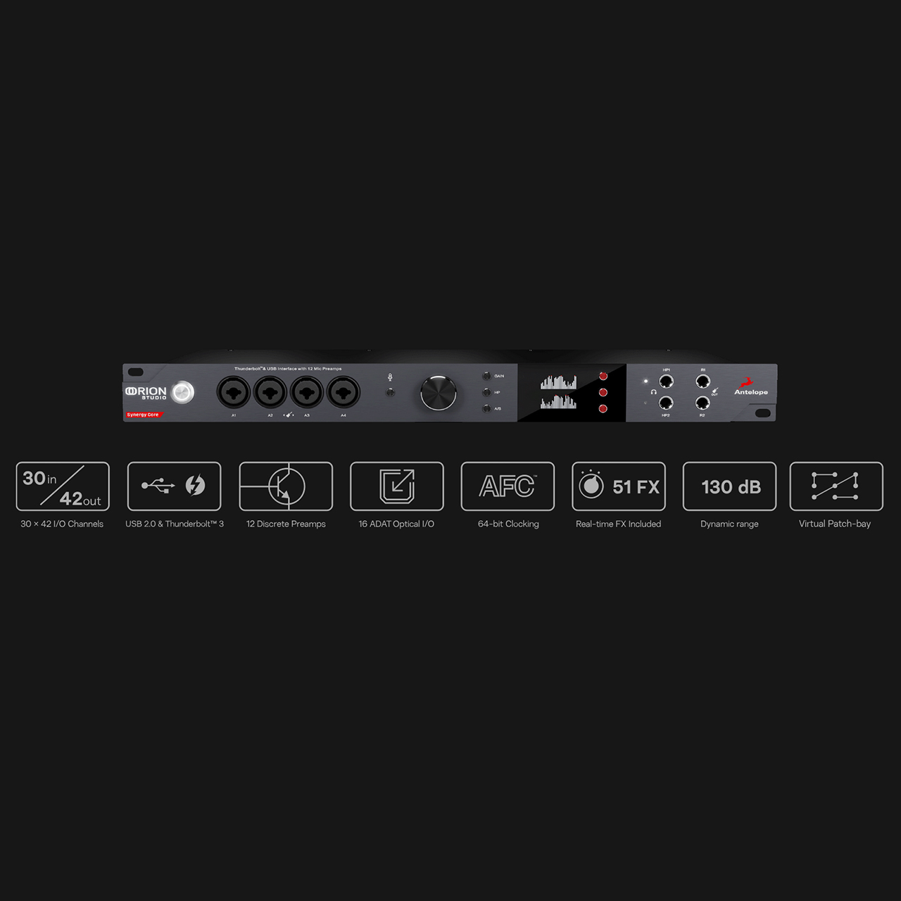 Antelope アンテロープ Orion Studio Synergy Core オーディオインターフェイス DAW DTM現代のレコーディングやミキシングに必要なすべてを網羅した設計