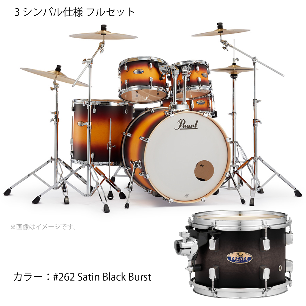 Pearl パール DECADE MAPLE ディケイドメイプル ドラムセット DMP825S/C-2CSN #262 Satin Black BurstDecade Mapleシリーズは、オールメイプルシェルを採用!扱いやすいハードウェアをパッケージした上でお求めやすく設定したドラムフルセット。