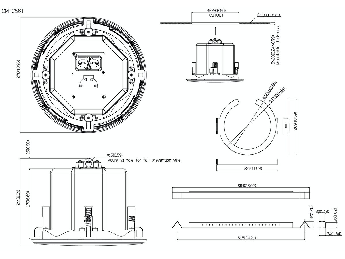 ■商品名  : CM-C56T K (ブラック) (2本/ペア) ◆ 6.5インチ 2way同軸 設備用天井埋め込み型 スピーカーシステム・シーリング型