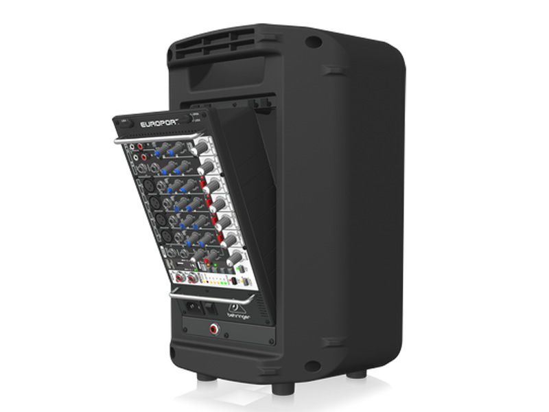 ・ デュアルスピーカーと取り外し可能な8チャンネルパワードミキサー(500W)を備えた超コンパクトなPAシステム