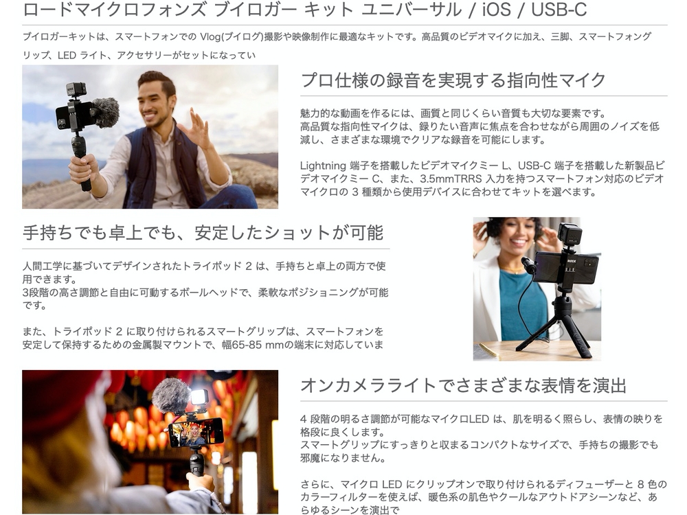 USB-C 端子に対応したスマートフォン用の Vlog(ブイログ)撮影キットです。