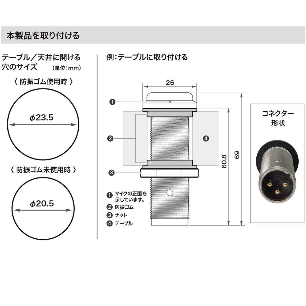・取り付け面の振動を減衰させる防振ゴムを付属。