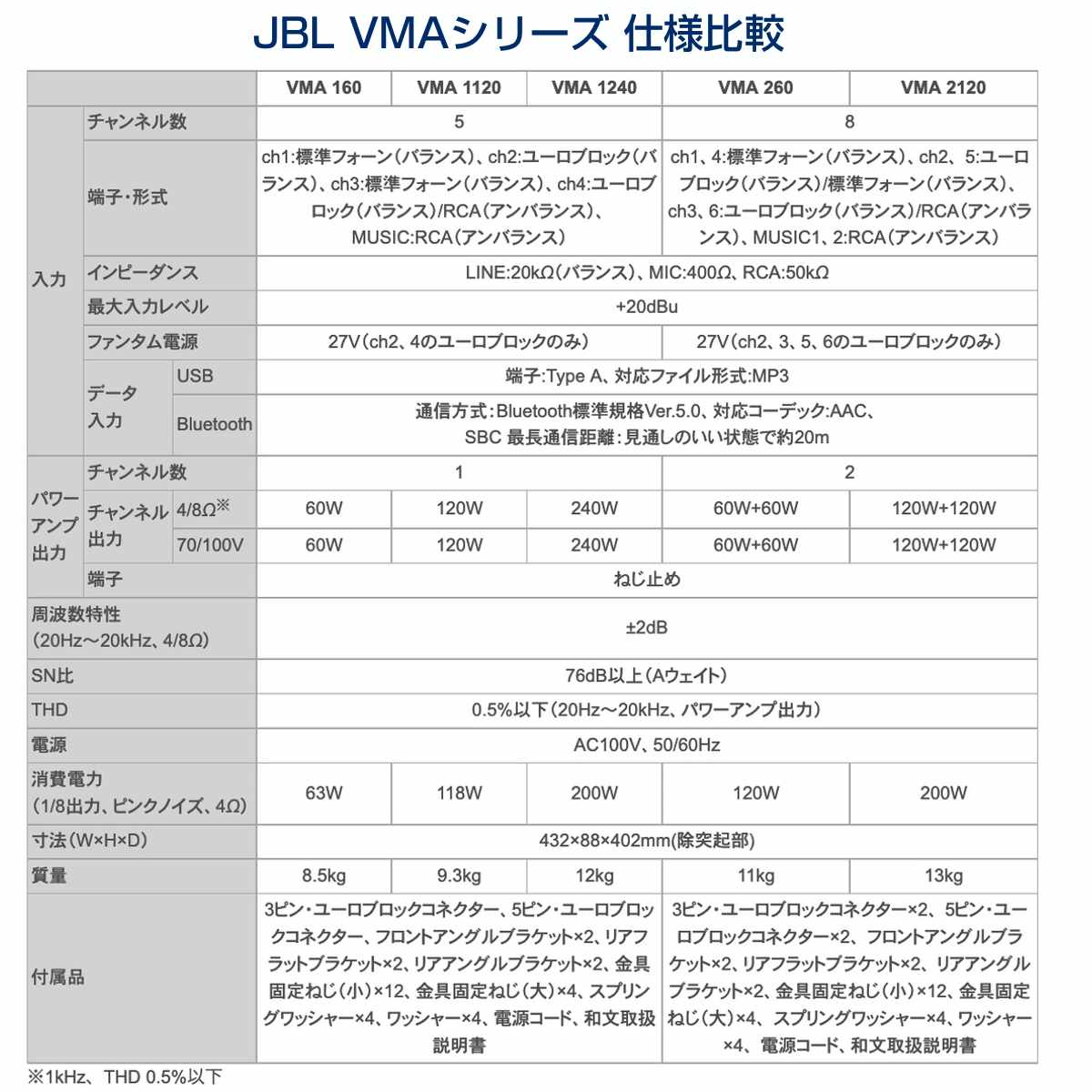 ◆ JBL ( ジェイビーエル ) VMA-1120 ◆ 1ch 120W Bluetooth受信機内蔵