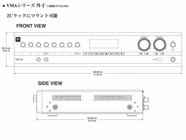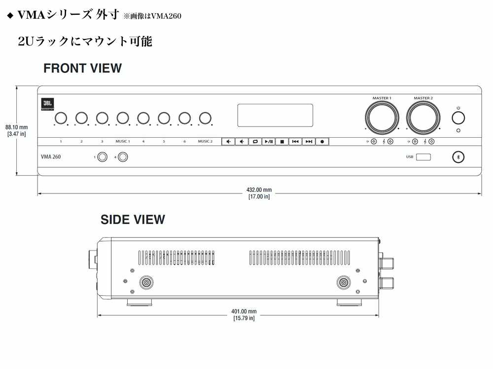 JBL ジェイビーエル VMA260 ◆ 2チャンネル パワーアンプ 60W+60W ( ハイ・ロー兼用 ) Bluetooth受信機内蔵 ストリーミング再生