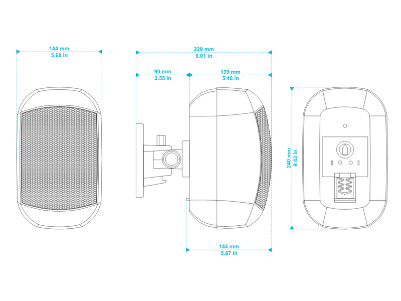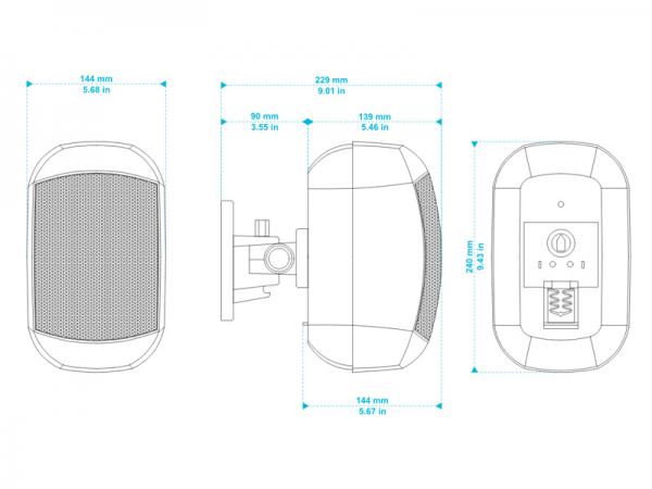 許容入力 70W (16Ω) Hiタップ:20, 10, 5, 2.5W ユニット :LF 4.25インチ / HF 1インチ 全天候モデル:IP64