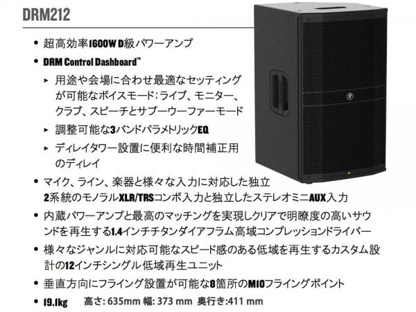 ■ MACKIE DRM212 (1本) ◆ パワードスピーカー 12インチ 2-Way 最大1600W , 134dB
