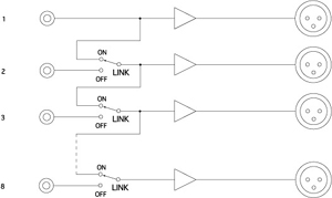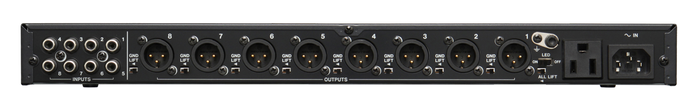 アンバランス入力をバランス出力に変換する回路を8系統内蔵したアンバランス/バランス・ライン・コンバー ター。
