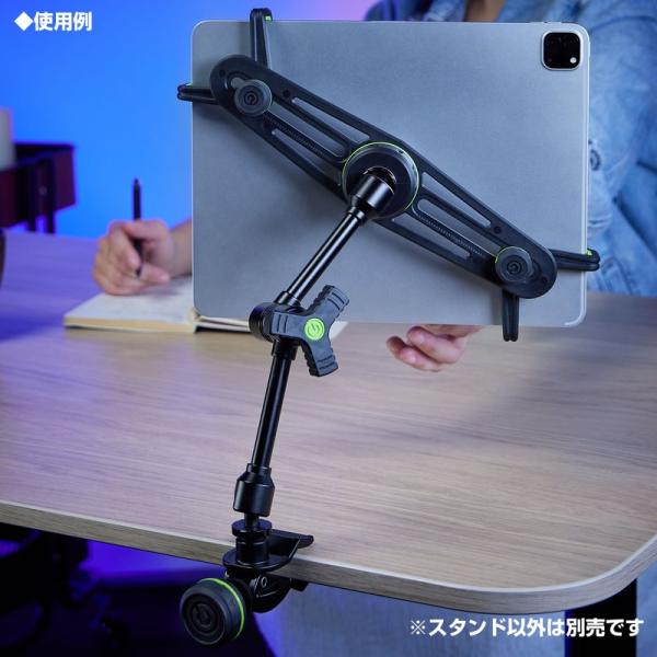 GMATH01Bはさまざまなスタンドやテーブルの上などに取り付けることができます。広いクランプレンジを持ち、頑丈な取り付けブラケットにより、お手持ちのタブレットを自由に配置することができる便利で優れたツールです。