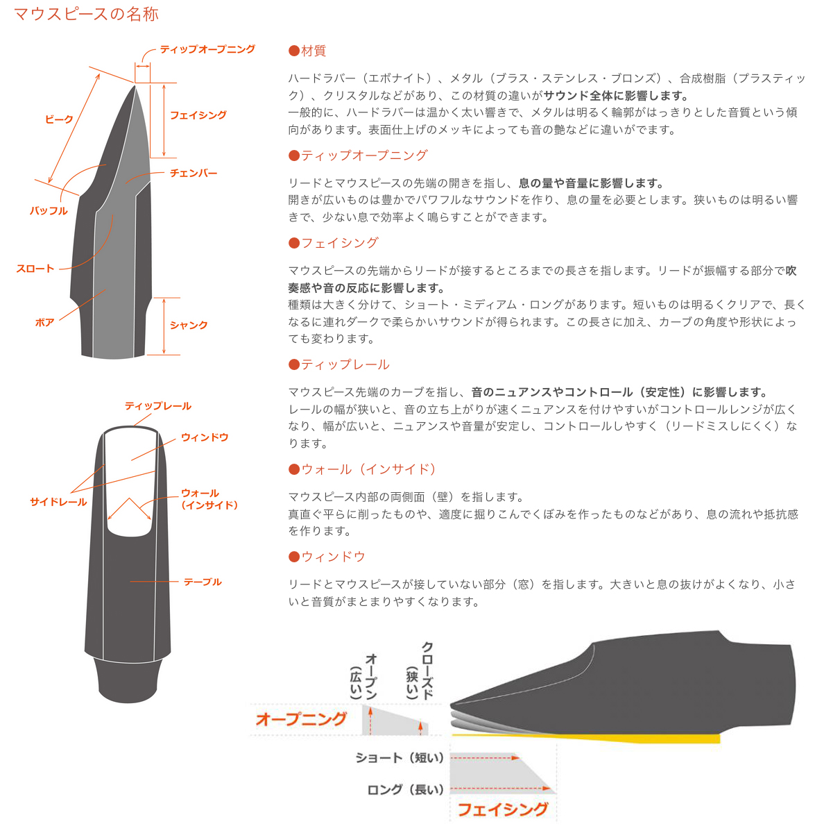 ソプラノ、アルト、テナー、バリトンサクソフォン用を生産しています。
