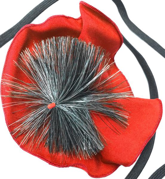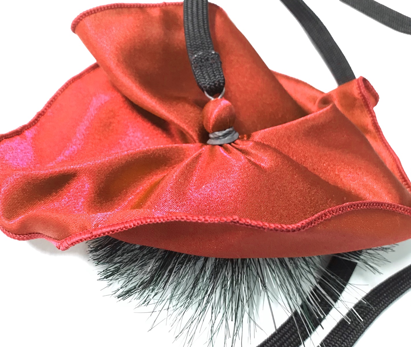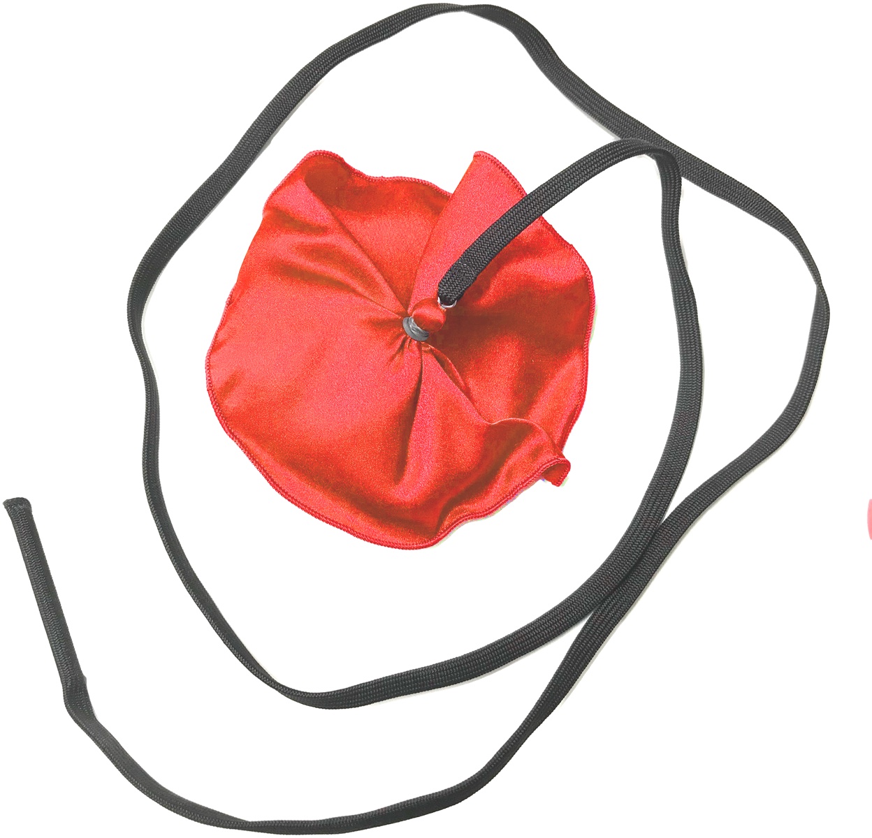 布の角におもりの付いたヒモがついており、そのおもりを太い方側に入れて逆側からおもりをひっぱって使用します。