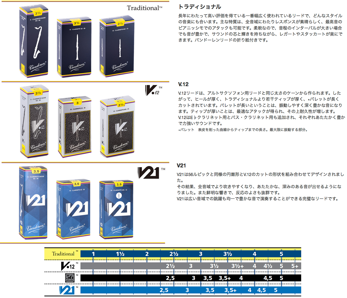 コントラバスクラリネット用リードのラインナップはトラディショナルのみです。