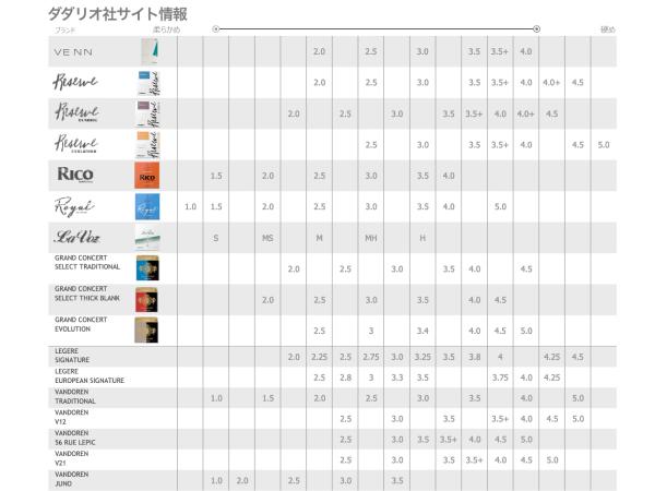 ■RICO Royal:リコの仕様を基本に、ファイルドカットを施しました。手頃な価格が魅力でクラシックからジャズ奏者に広く人気のある商品です。強度も幅広く設定し、奏者の選択肢を広げています。柔軟性と素早いレスポンス。ファイルドカット。