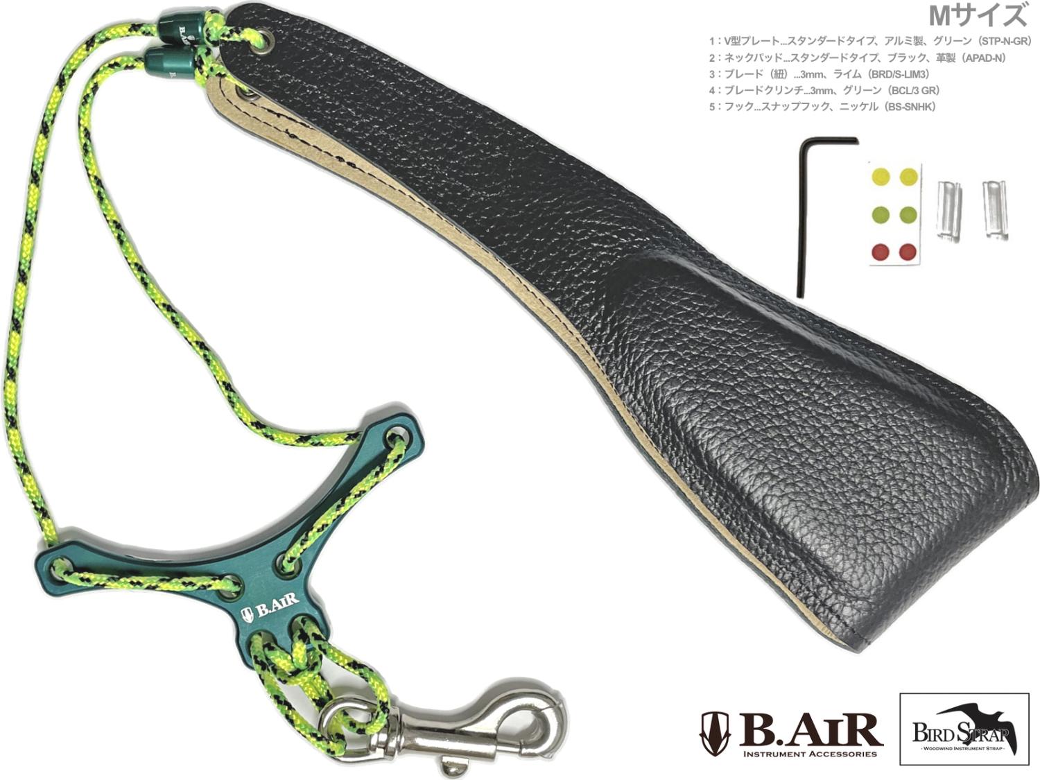 B.AIR ビーエアー バードストラップ カスタマイズ スタンダード グリーン サックス用 Mサイズ 3mm ネックストラップ BIRD STRAP standard saxophone 北海道 沖縄 離島不可アルミ製プレート スナップフック 革製 Alto Tenor sax