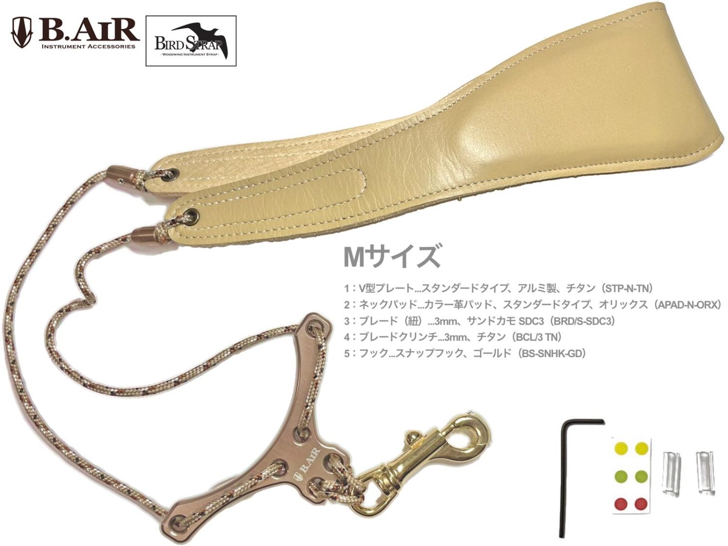 B.AIR ビーエアー バードストラップ オリックス ベージュ チタン サックス用 Mサイズ 3mm ネックストラップ BIRD STRAP standard saxophone 北海道 沖縄 離島不可アルミ製プレート スナップフック 革製 Alto Tenor sax