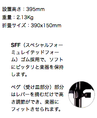 ■ペグ(受け皿部分)部分はレバーを摘むだけで高さ調節ができ、楽器にフィットさせられます。