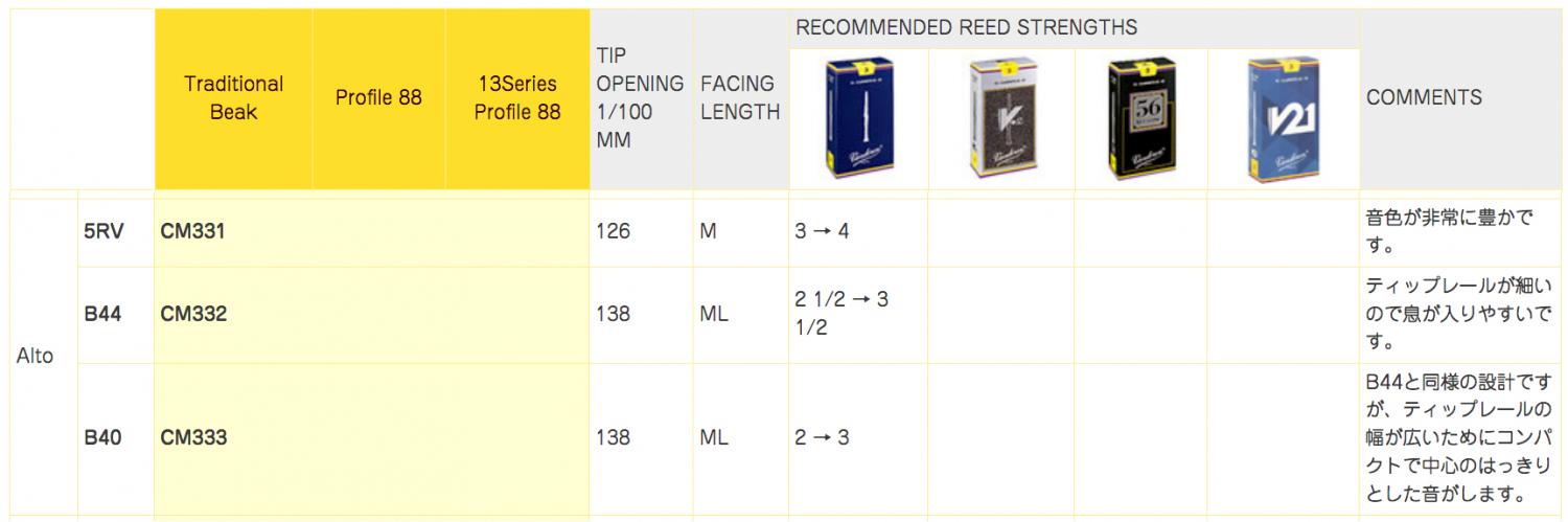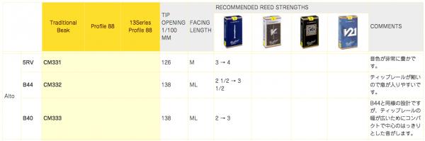 スタンダードなシリーズ。あらゆるタイプの奏者のニーズに応じて、様々な個性を持つモデルが作られています。 1つ1つ個性はありますが、使ってみて自分に合うかどうかが大事です。プロファイル88とトラディショナルの違いは、ビークの角度にあります。